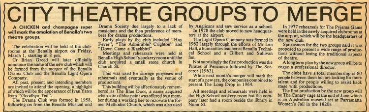 A theatre company based in Benalla, with a group of hard working and enthusiastic volunteers, which is a Child Safe organisation. Out to have fun while providing entertainment for the local community. Benalla Theatre Company was formed in 1985 with the amalgamation of the Benalla Drama Club and Benalla Light Opera Company. A hard working group that rehearse twice a week. If you are interested in joining Benalla Theatre Company, please contact Emily Watt via email.