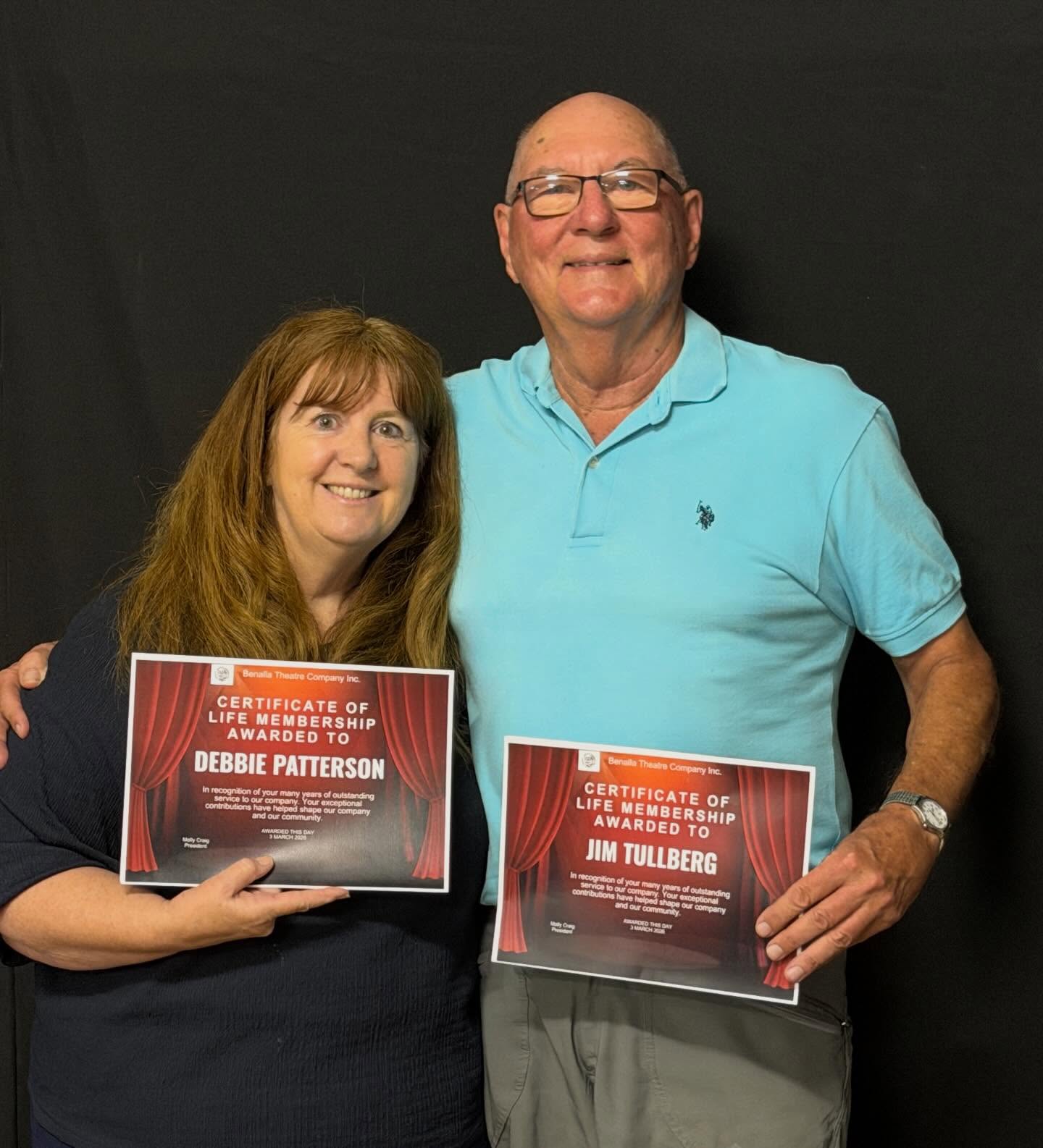 Benalla Theatre Company recently awarded the first two very deserving people Life Memberships. Huge congratulations to Debbie Patterson and Jim Tullberg.